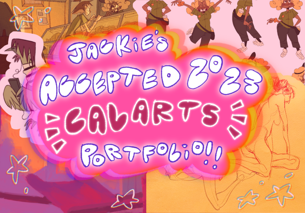 hi there! i'm jackie, and i was recently accepted to calarts for character animation! i was rejected the year prior and i've learned a lot since then, so in addition to showing my full portfolio here, i'll be adding some notes about why i placed certain things in my portfolio and why i think it led to me getting accepted.